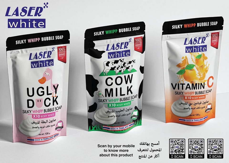 Laser White Ugly Duck – Silky Whipp Bubble Soap Ky sapun unik është i frymëzuar nga historia e “rosës së shëmtuar”, por rezultati është një lëkurë e bukur dhe e shndritshme. Formula e tij e pasur pastron butësisht lëkurën duke e bërë më të bardhë, më të butë dhe më të freskët që nga përdorimi i parë. Pastrim i thellë me shkumë të dendur “whipp”. Ndihmon në reduktimin e njollave të errëta. Jep ndriçim dhe butësi natyrale për trupin. Përshtatet për: të gjitha llojet e lëkurës. Pesha neto: 120 g Origjina: Made in Thailand
